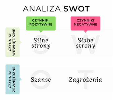 Analiza SWOT to bardzo popularna technika, z pomocą której porządkujesz i analizujesz informacje zgodnie z 4 konkretnymi polami diagramu: silne strony (eng. Strengths), słabe strony (eng. Weakness), szanse (eng. Opportunities) i zagrożenia (eng. Threats).