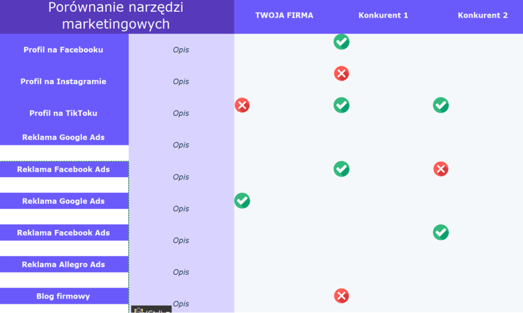 Masz tutaj naprawdę dużą dowolność. Szablon analizy konkurencji to tylko wskazówka.