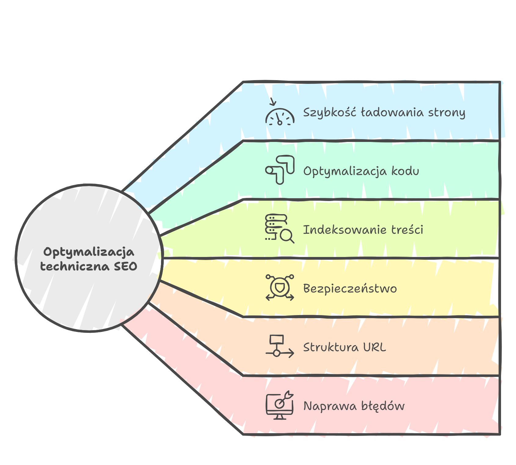 W jej skład wchodzą m.in. poprawa szybkości ładowania strony, optymalizacja kodu, indeksowanie treści, bezpieczeństwo, struktura URL-i oraz eliminacja błędów technicznych. Dzięki tym działaniom Google może efektywniej analizować witrynę, co zwiększa jej szanse na wysokie pozycje w wynikach wyszukiwania.