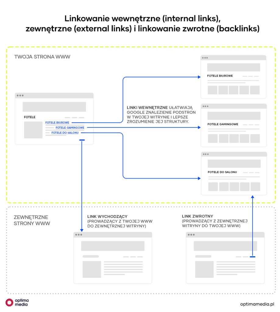 Pamiętaj, że warto linkować do różnych podstron (nie tylko do strony głównej i kontaktowej). Ograniczenie się tylko do wąskiej grupy zakładek znacząco uszczupli potencjał Twojego SEO.