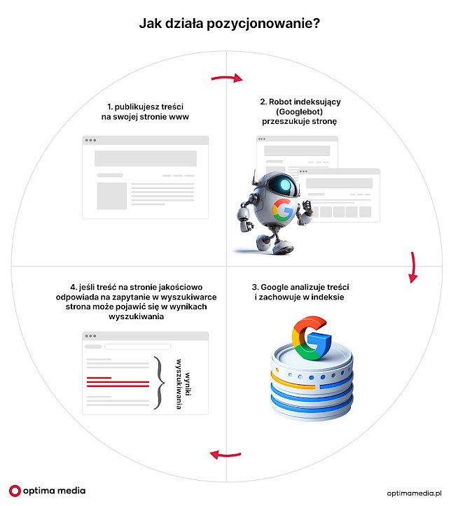 Użytkownicy, którzy wpisują w wyszukiwarki internetowe konkretne słowa kluczowe, jako wynik wyszukiwania dostają listę stron www (tzw. SERP – Search Engine Results Page). Kolejność tych stron ustalana jest przez zaawansowane algorytmy Google. Algorytmy te analizują i przeliczają kilkaset czynników rankingowych. Następnie w oparciu o te czynniki, ustalany jest ranking stron i ich pozycje w wynikach wyszukiwania dla konkretnego słowa kluczowego.