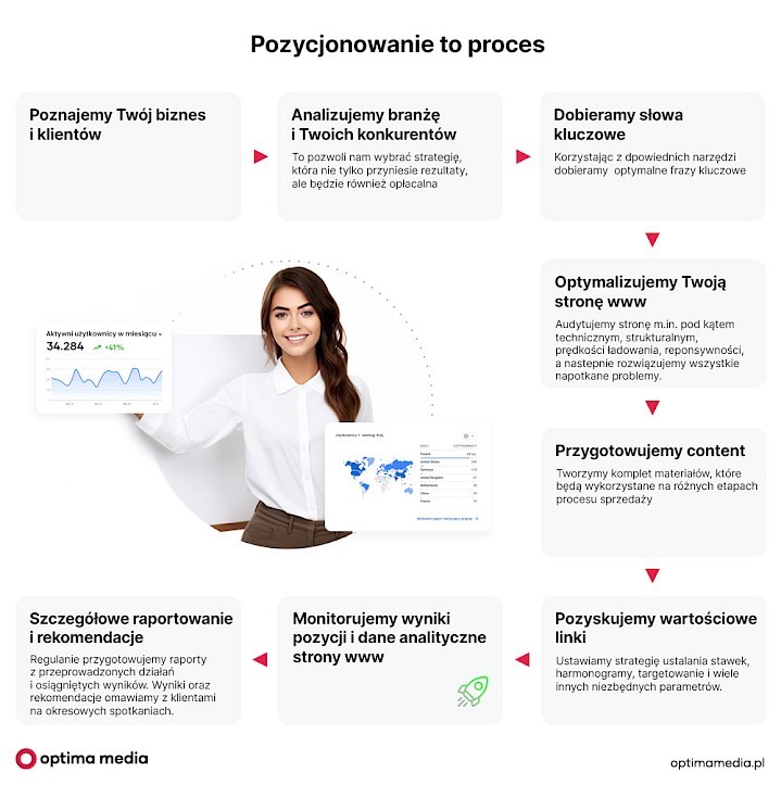 Jeśli rozważasz zlecenie pozycjonowania strony www wyspecjalizowanej agencji skorzystaj z bezpłatnych konsultacji w Optima Media. Wypełnij formularz kontaktowy i omów z naszymi konsultantami strategię, którą dla Ciebie przygotujemy.