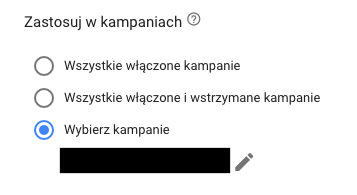 Gdy to zrobimy, musimy zaznaczyć dla których kampanii chcemy ustalić daną regułę. Wstępnie jest ona zadeklarowana dla kampanii, które zaznaczyliśmy na początku procesu.